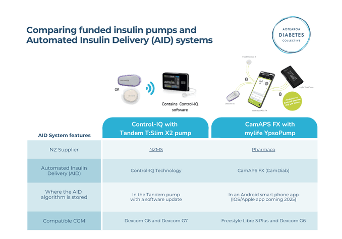 Pump comparison sheet (Diabetes NZ)
