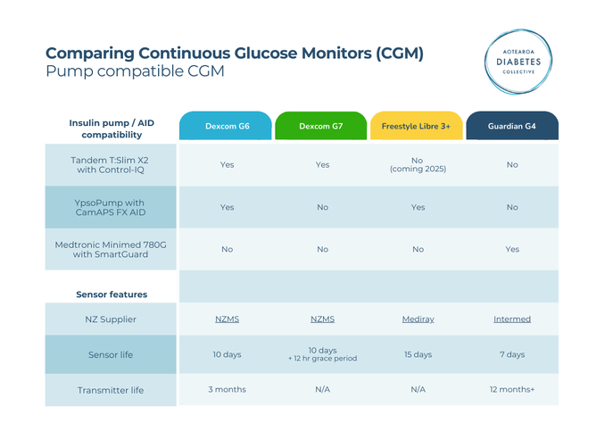Pump comparison sheet (Diabetes NZ)